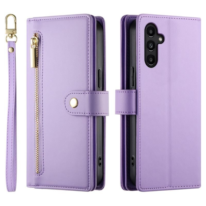 Για Samsung Galaxy A14 5G / 4G Nine Card-slot φερμουάρ πορτοφόλι τσάντα δερμάτινη θήκη τηλεφώνου (μωβ)