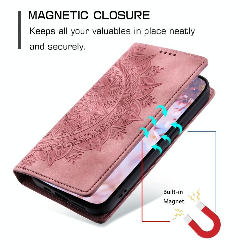 Για Samsung Galaxy A14 5G / 4G Totem ανάγλυφο μαγνητική δερμάτινη θήκη τηλεφώνου (Ροζ χρυσός)