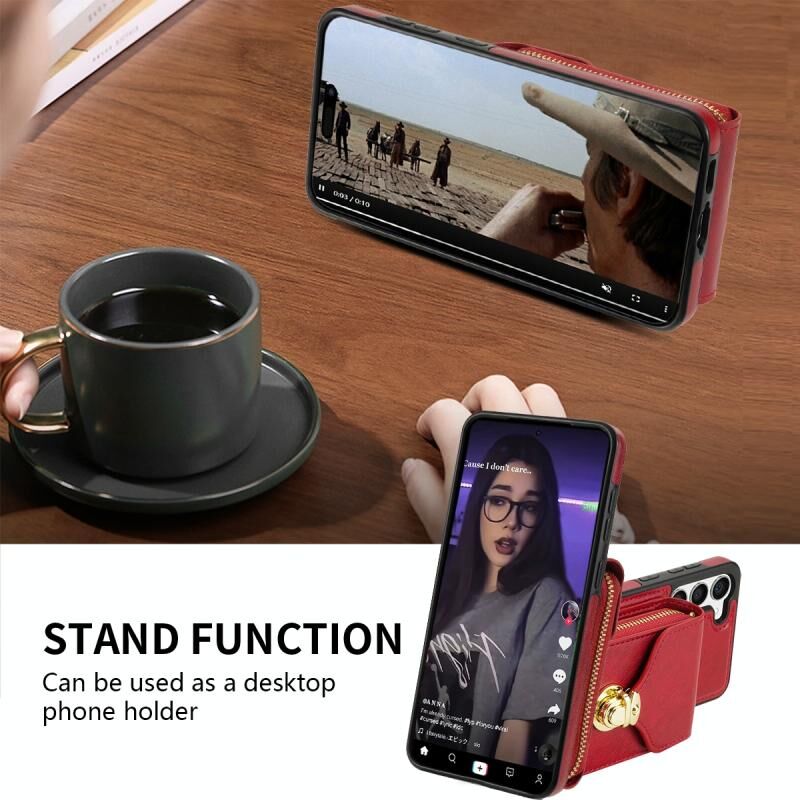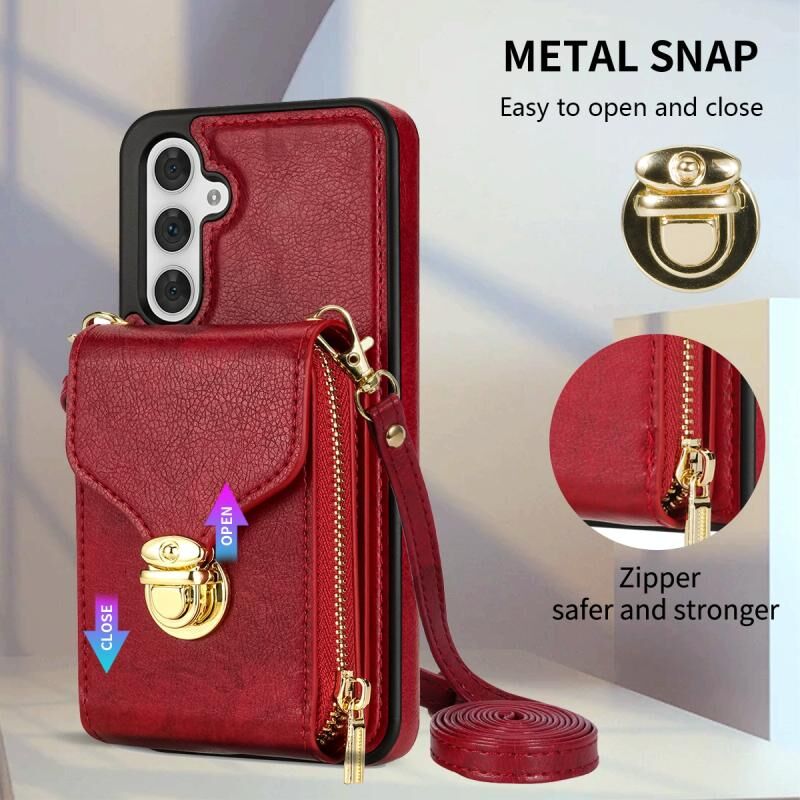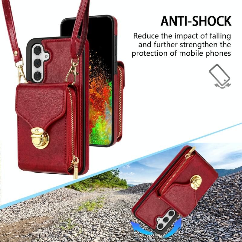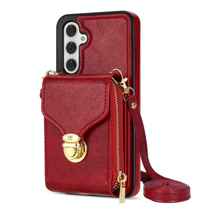 Για Samsung Galaxy A14 5G / 4G φερμουάρ υλικό κάρτα πορτοφόλι τηλέφωνο υπόθεση (κόκκινο)