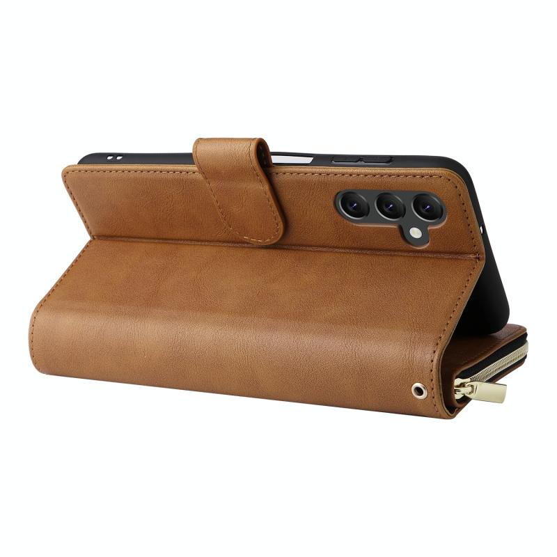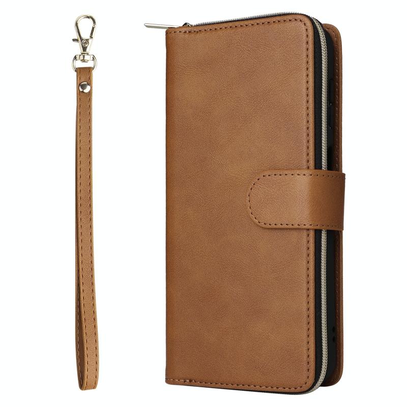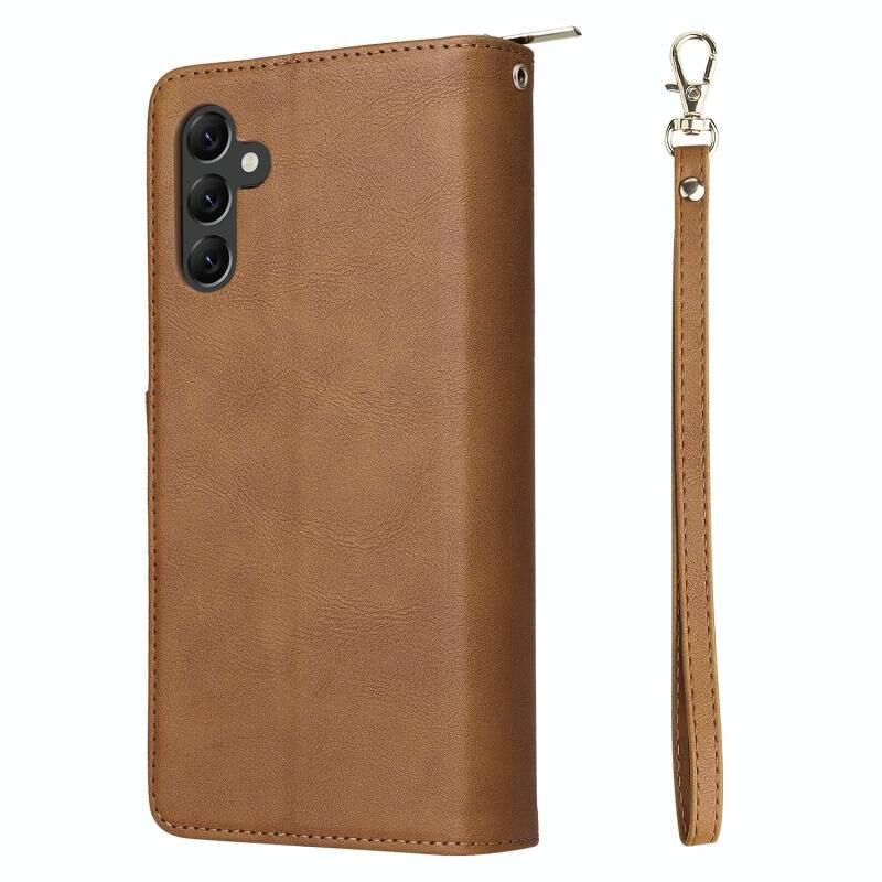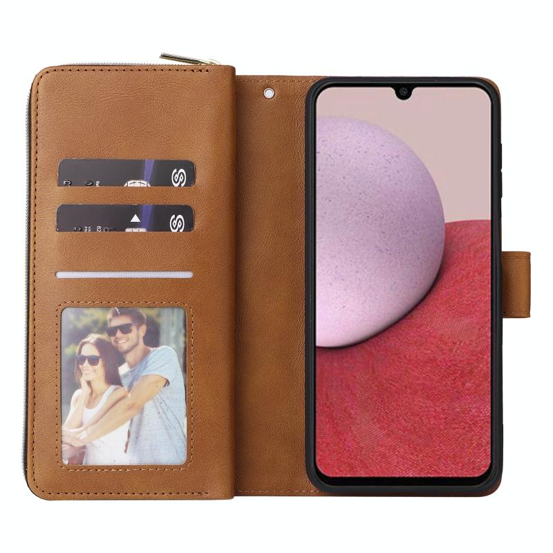 Θήκη κινητού Samsung Galaxy A14 5G από δέρμα με θήκη πορτοφολιού με φερμουάρ και 9 θέσεις για κάρτες (Καφέ)