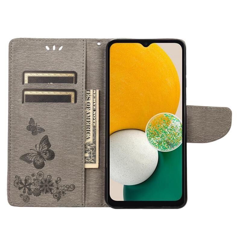 Θήκη τηλεφώνου Samsung Galaxy A14 5G, δερμάτινη, οριζόντια, με ανάγλυφο σχέδιο πεταλούδας (Καφέ)