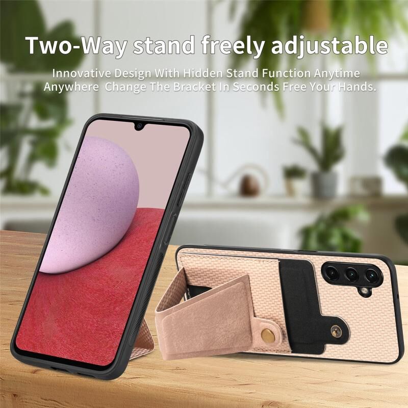 Για Samsung Galaxy A14 5G ινών άνθρακα ινών πορτοφόλι Flip κάρτα K-σχήμα κάτοχος υπόθεση τηλεφώνου (χακί)