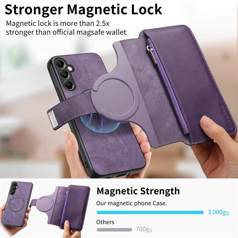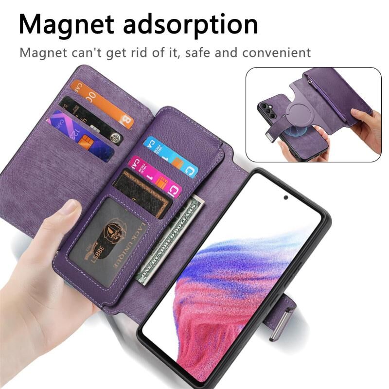 For Samsung Galaxy A14 5G CaseNeo MagSafe RFID Anti-theft Zipper Wallet Retro Leather Phone Case(Purple) (CaseNeo)