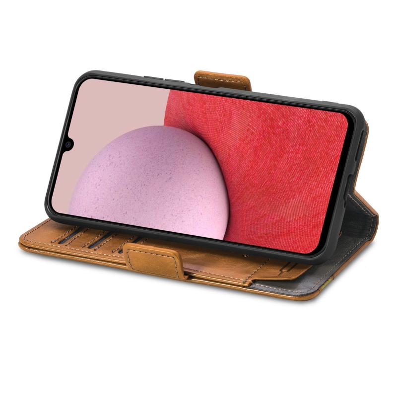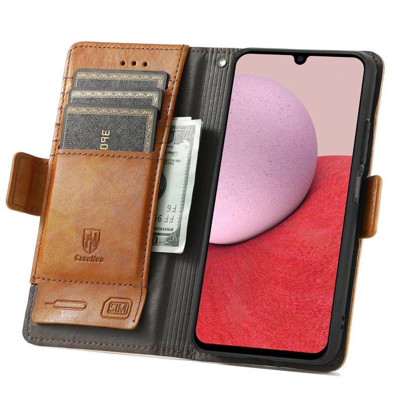 For Samsung Galaxy A14 5G CaseNeo Splicing Dual Magnetic Buckle Leather Phone Case(Khaki)