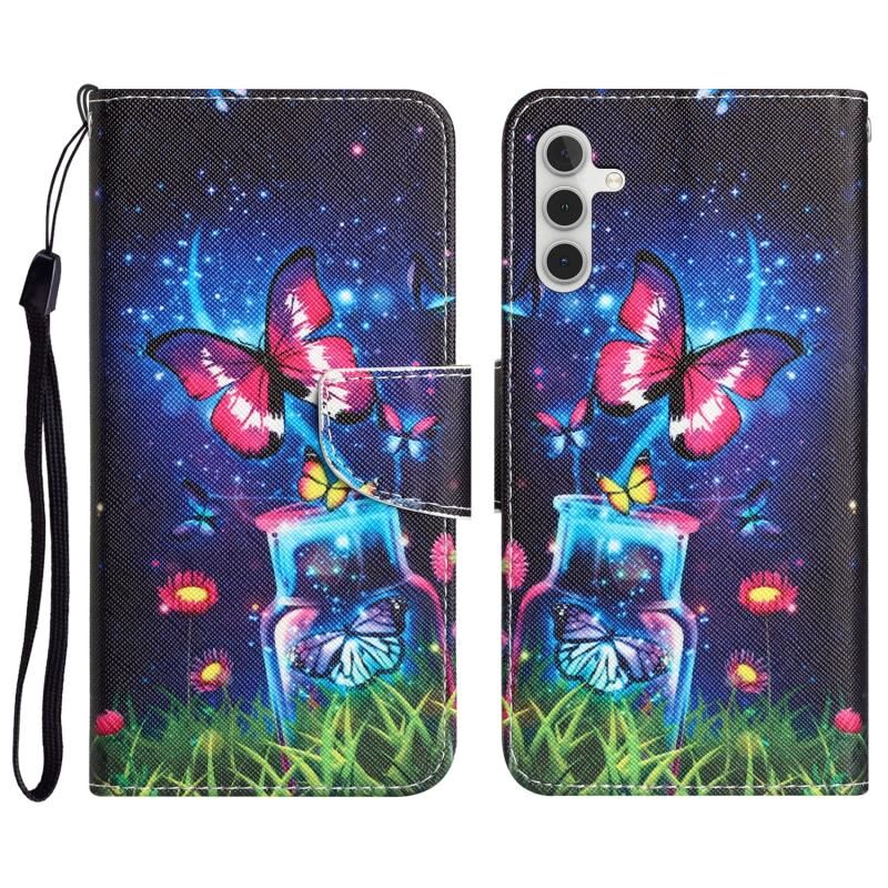 Θήκη τηλεφώνου Samsung Galaxy A14 5G από δέρμα με έγχρωμο σχέδιο (Μπουκάλι Πεταλούδα)