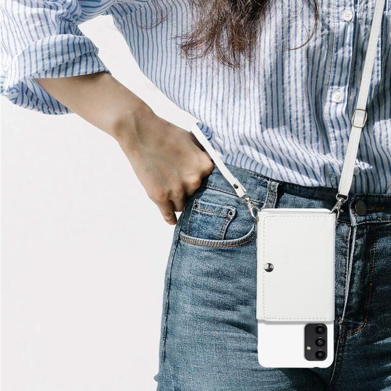 Για Samsung Galaxy A14 5G Crossbody Lanyard πορτοφόλι κάρτα τσάντα θήκη τηλεφώνου (Λευκό)