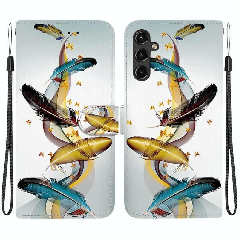 Θήκη κινητού τηλεφώνου Samsung Galaxy A14 5G από δέρμα με πολύχρωμο σχέδιο κρυστάλλινης υφής (Χρυσά φτερά πεταλούδας)