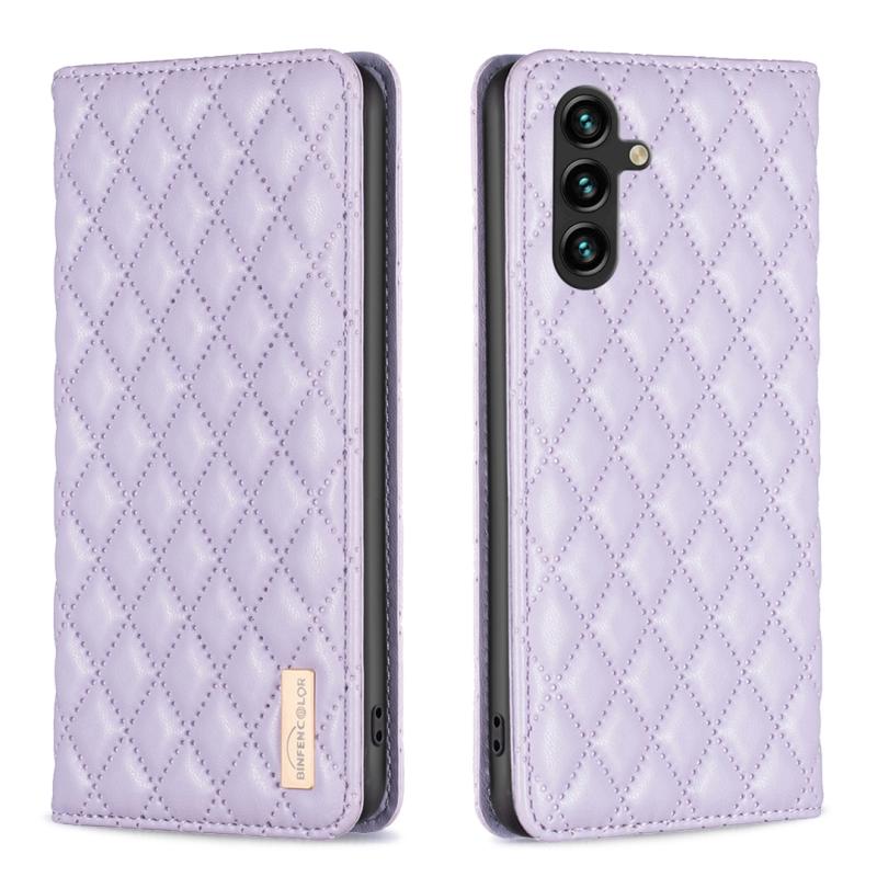 Θήκη τηλεφώνου Samsung Galaxy A14 5G, Δερμάτινη, Πτυσσόμενη, με Μαγνητικό Κλείσιμο και Διαμαντένιο Σχέδιο (Μωβ)