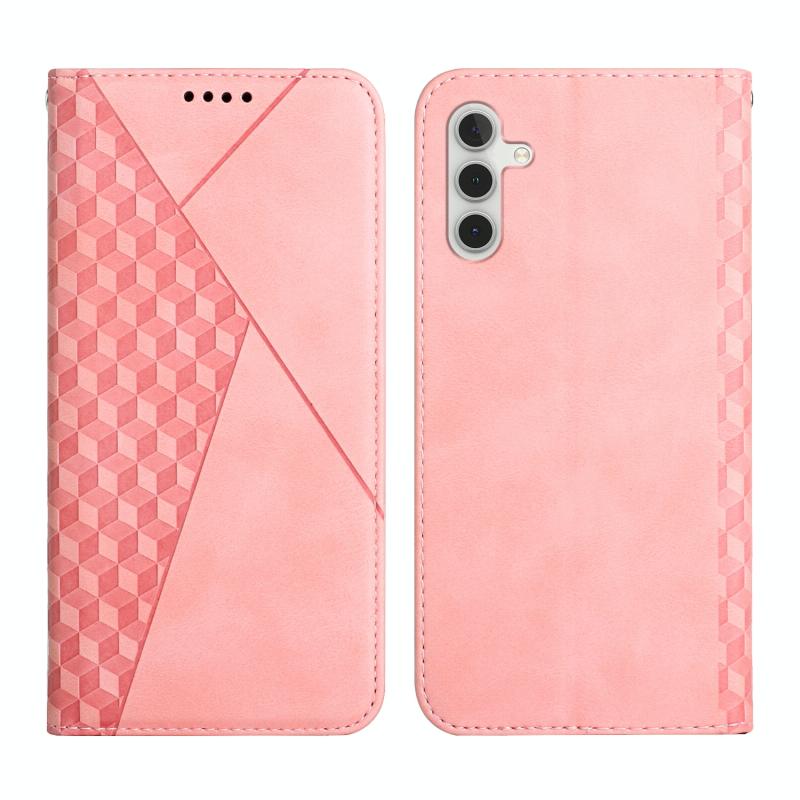 Θήκη κινητού τηλεφώνου Samsung Galaxy A14 5G από δέρμα με μαγνητικό κούμπωμα και υφή "Diamond Splicing" (Ροζ χρυσός)