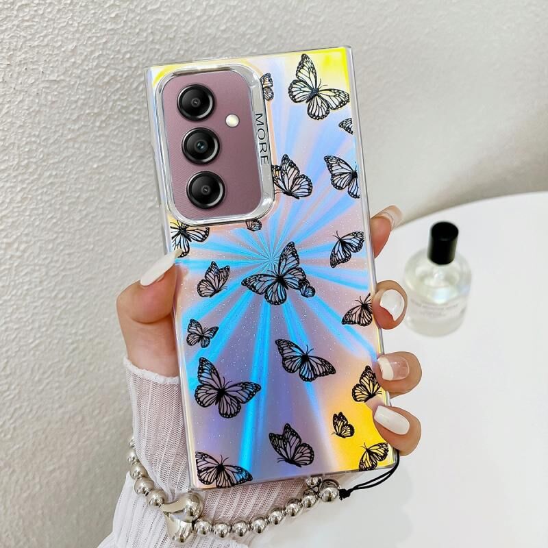 Για Samsung Galaxy A14 5G Electroplating λέιζερ πεταλούδα τηλέφωνο υπόθεση με λουράκι καρπού (Μαύρες Πεταλούδες AB5)