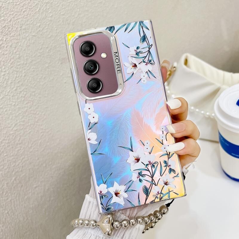Θήκη τηλεφώνου για Samsung Galaxy A14 5G με ηλεκτρολυτική επίστρωση, λουλουδάτο σχέδιο λέιζερ και λουρί καρπού (Πρωινό Δόξα AH16)