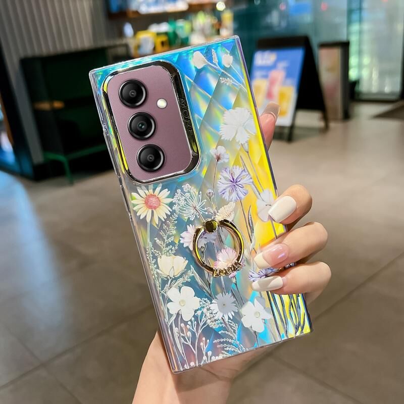 Θήκη τηλεφώνου TPU με δακτύλιο στήριξης και λουλουδάτο σχέδιο με ηλεκτρολυτική επίστρωση για Samsung Galaxy A14 5G (Χρυσάνθεμο AH5)