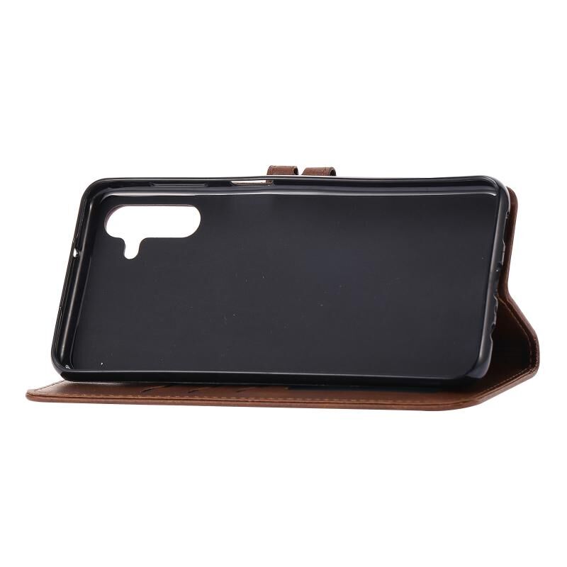 Για Samsung Galaxy A14 5G ανάγλυφο Happy Cat μοτίβο Flip υπόθεση τηλεφώνου δέρμα (Καφέ)