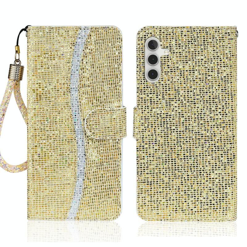 Θήκη τηλεφώνου Samsung Galaxy A14 5G από δέρμα με γκλίτερ σε σκόνη (Χρυσός)