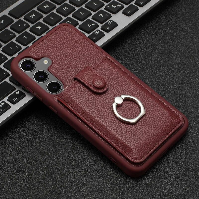 Για Samsung Galaxy A14 5G Litchi Υφή Σχεδίαση κάρτα τσάντα τσάντα δαχτυλίδι κάτοχος υπόθεση τηλεφώνου (Κρασοκόκκινο)
