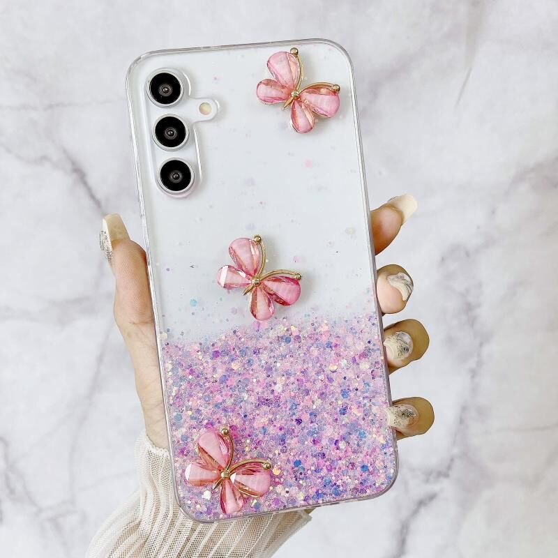 3. Κομψή και Όμορφη Εμφάνιση: Διαθέτει σχέδιο με τρισδιάστατες πεταλούδες με πολύτιμους λίθους και γκλίτερ, δημιουργώντας μια λαμπερή και πολυτελή εμφάνιση.