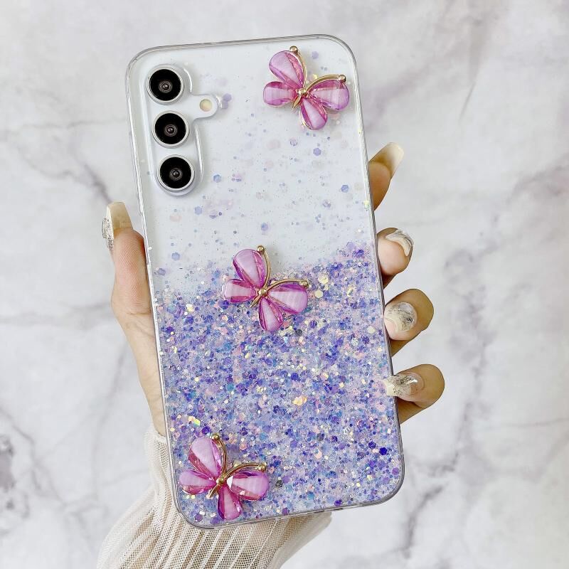 3. Κομψή και Όμορφη Εμφάνιση: Διαθέτει σχέδιο με τρισδιάστατες πεταλούδες με πολύτιμους λίθους και γκλίτερ, δημιουργώντας μια λαμπερή και πολυτελή εμφάνιση.