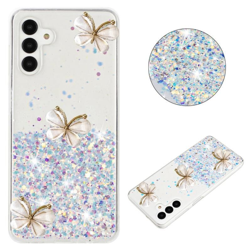 Θήκη τηλεφώνου TPU για Samsung Galaxy A14 5G, Λαμπερός Αστρικός Ουρανός, Glitter, Πεταλούδα (Ροζ)