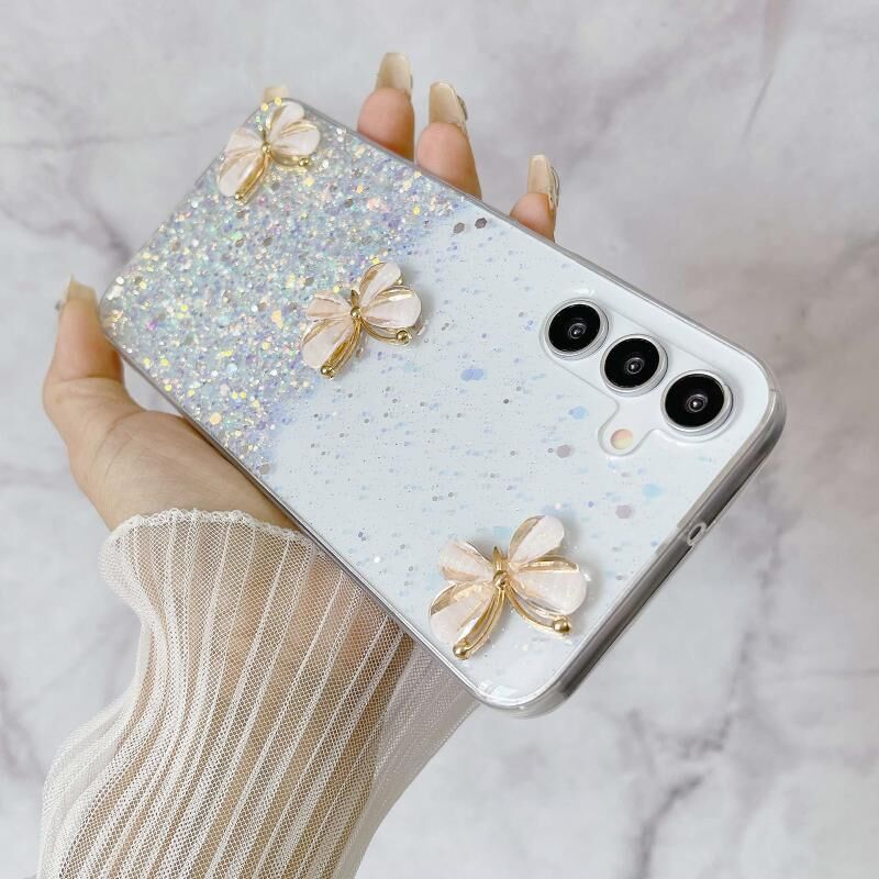 3. Κομψή και Όμορφη Εμφάνιση: Διαθέτει σχέδιο με τρισδιάστατες πεταλούδες με πολύτιμους λίθους και γκλίτερ, δημιουργώντας μια λαμπερή και πολυτελή εμφάνιση.