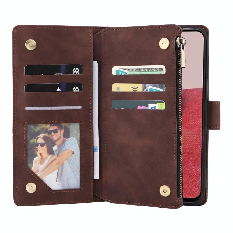 Για Samsung Galaxy A14 5G Πολυλειτουργικό παγωμένο φερμουάρ πορτοφόλι δερμάτινη θήκη τηλεφώνου (Καφέ)