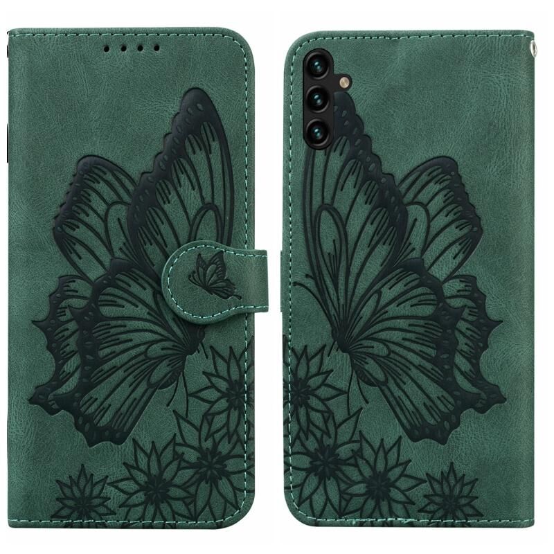 Θήκη τηλεφώνου Samsung Galaxy A14 5G, δερμάτινη, οριζόντια, με ανάγλυφο σχέδιο πεταλούδων και ρετρό υφή (Μαύρο)