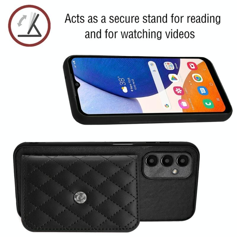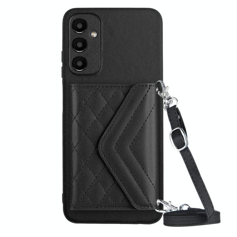 Για Samsung Galaxy A14 5G Rhombic υφή κάρτα τσάντα RFID υπόθεση τηλεφώνου με μακρύ κορδόνι (Μαύρο)