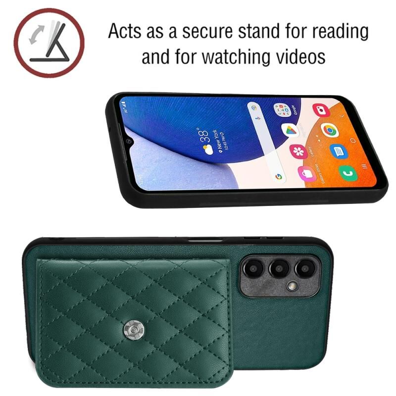 Για Samsung Galaxy A14 5G Rhombic υφή κάρτα τσάντα RFID υπόθεση τηλεφώνου με μακρύ κορδόνι (Πράσινο)