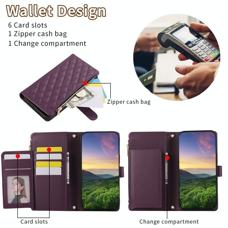 Θήκη κινητού τηλεφώνου Samsung Galaxy A14 5G, δερμάτινη με φερμουάρ και ρόμβους (Μωβ)