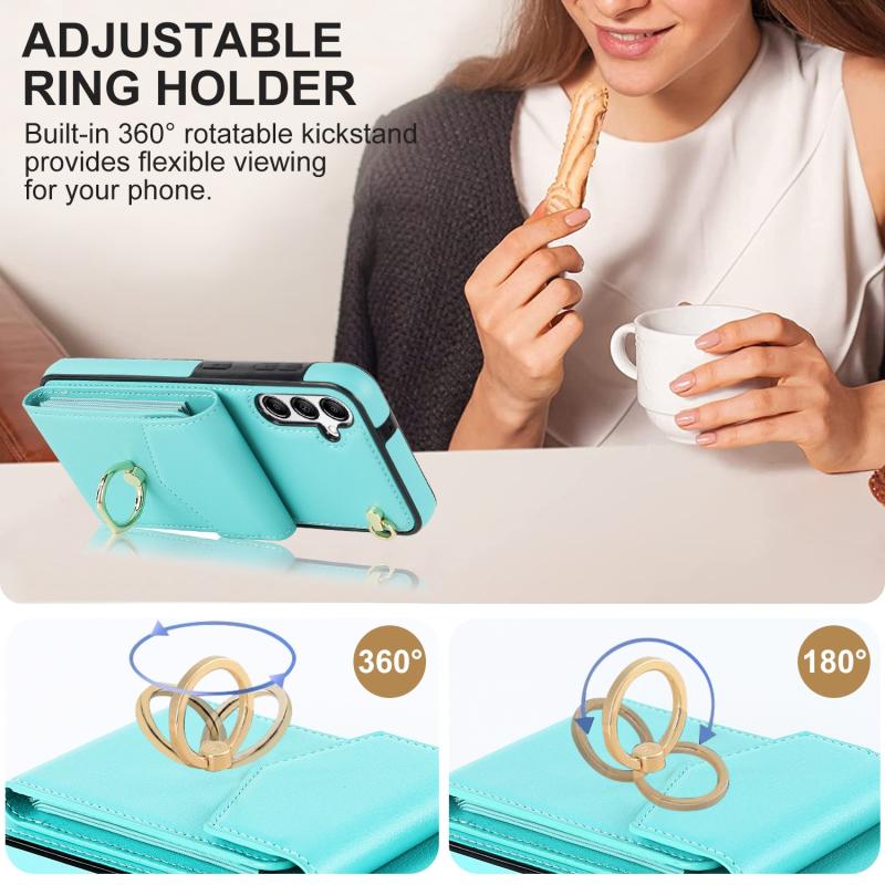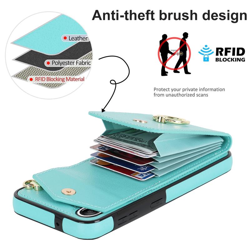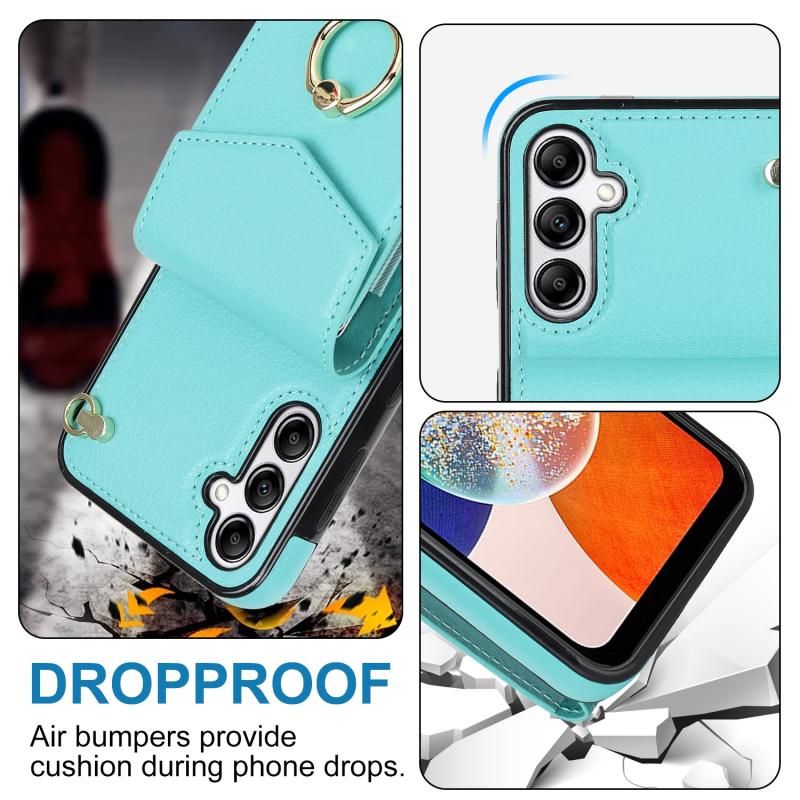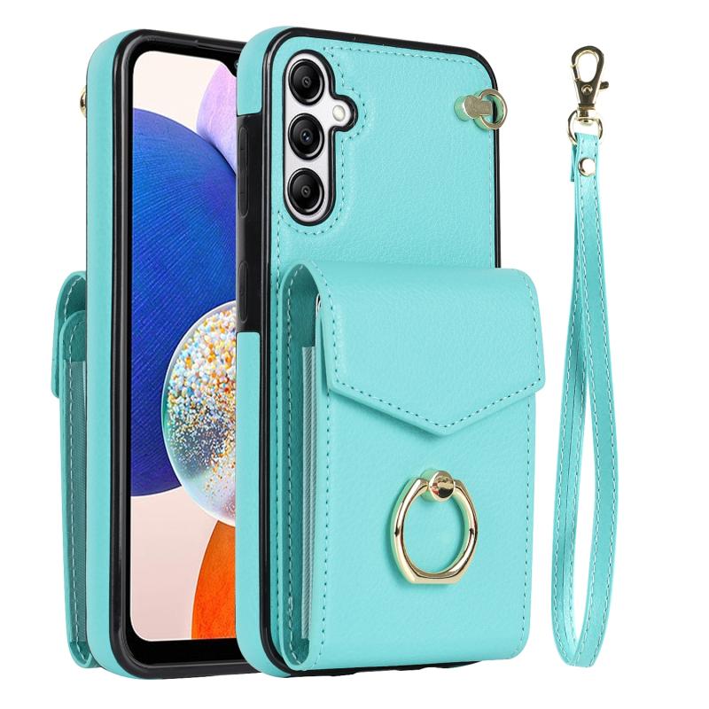 Θήκη κινητού τηλεφώνου με δακτύλιο και θήκη καρτών RFID για Samsung Galaxy A14 5G (Μέντας πράσινο)