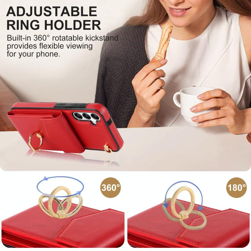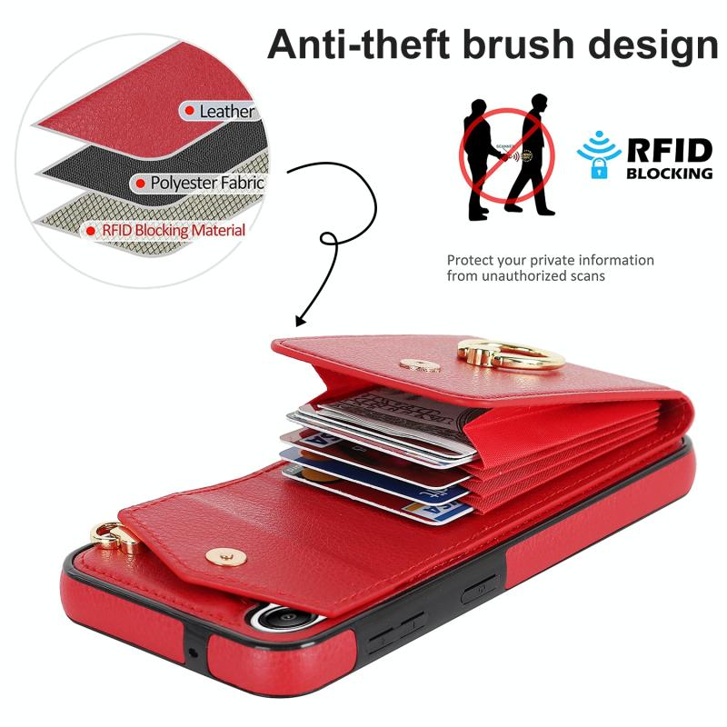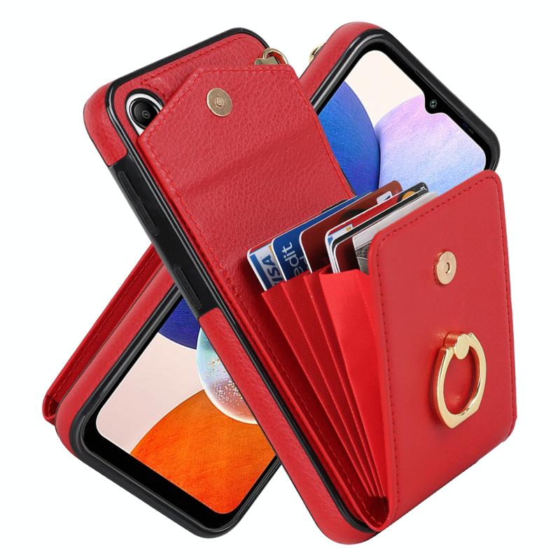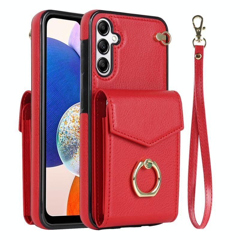 Θήκη κινητού τηλεφώνου με δακτύλιο και θήκη καρτών RFID για Samsung Galaxy A14 5G (Κόκκινο)