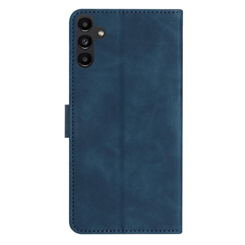 Θήκη τηλεφώνου Samsung Galaxy A14 5G Seven Butterflies, δερμάτινη ανάγλυφη (Μπλε)