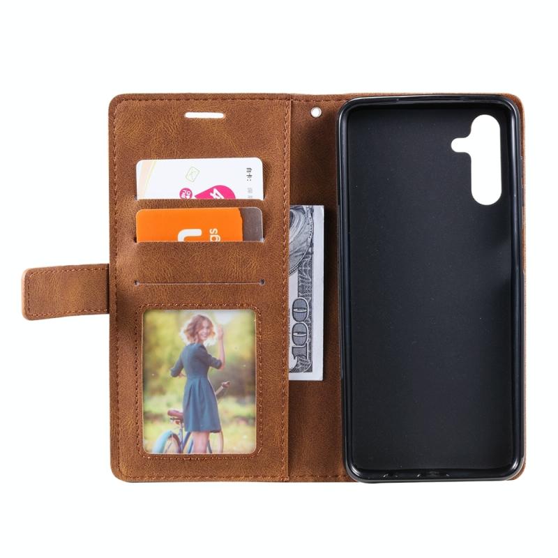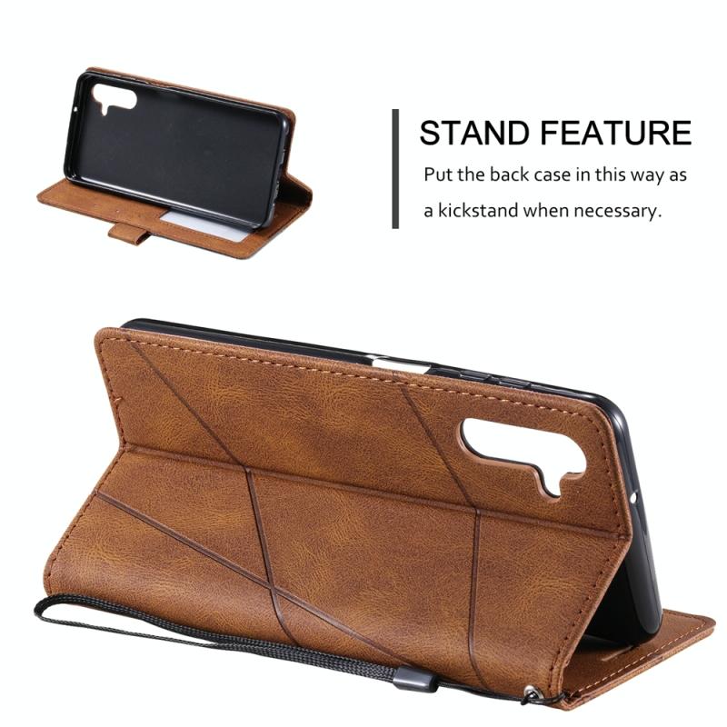 Θήκη τηλεφώνου Samsung Galaxy A14 5G με υφή δέρματος και ραφές (Καφέ)