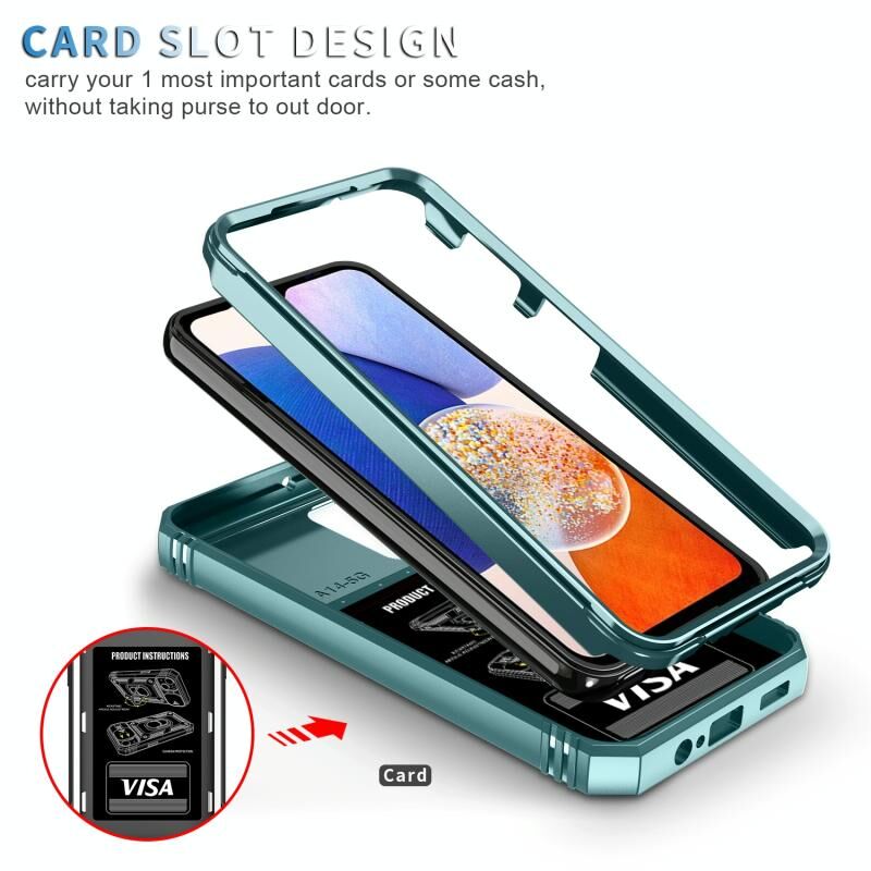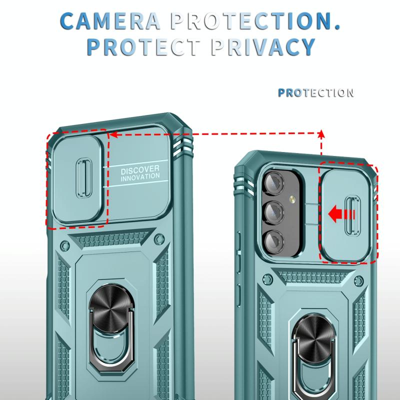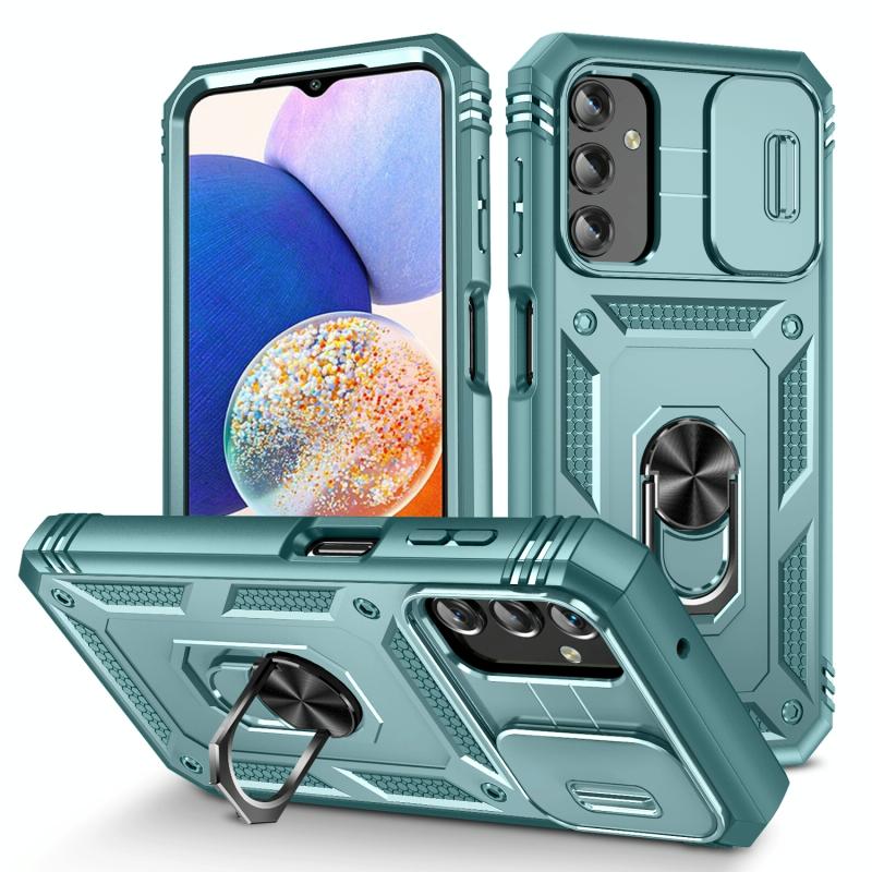 Θήκη κινητού τηλεφώνου Samsung Galaxy A14 5G με συρόμενο προστατευτικό κάμερας Camshield, κατασκευασμένη από TPU + PC (Πράσινο + Ροζ)