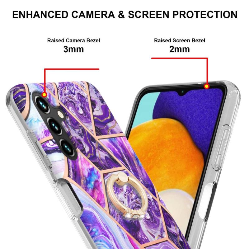 Θήκη κινητού τηλεφώνου Samsung Galaxy A14 5G, με σχέδιο μαρμάρου και λουλουδιών, IMD TPU, με δακτύλιο στήριξης (Σκούρο Μωβ)