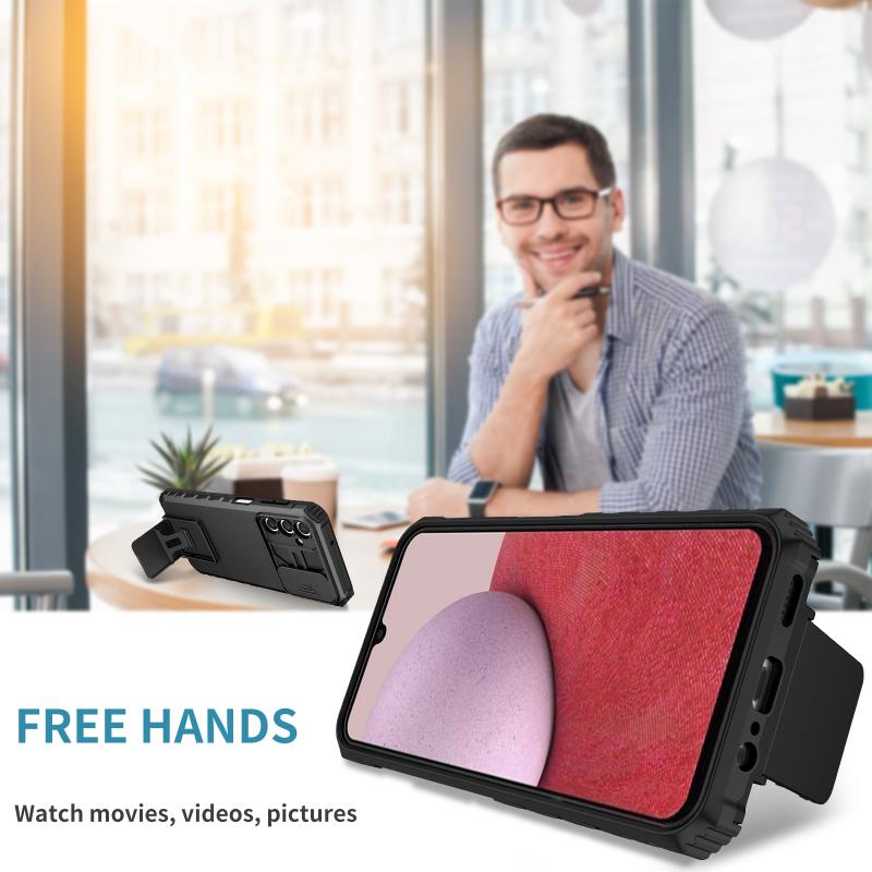 Θήκη κινητού τηλεφώνου Samsung Galaxy A14 5G με στερεοσκοπική βάση και συρόμενο προστατευτικό κάμερας (Λευκό)