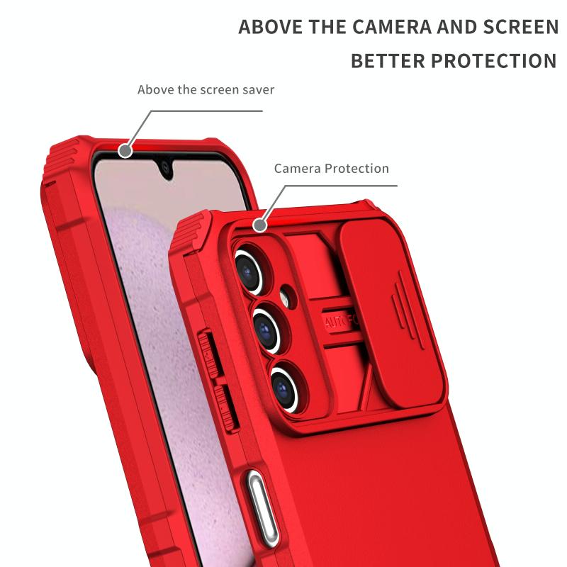 Θήκη κινητού τηλεφώνου Samsung Galaxy A14 5G με στερεοσκοπική βάση και συρόμενο προστατευτικό κάμερας (Λευκό)