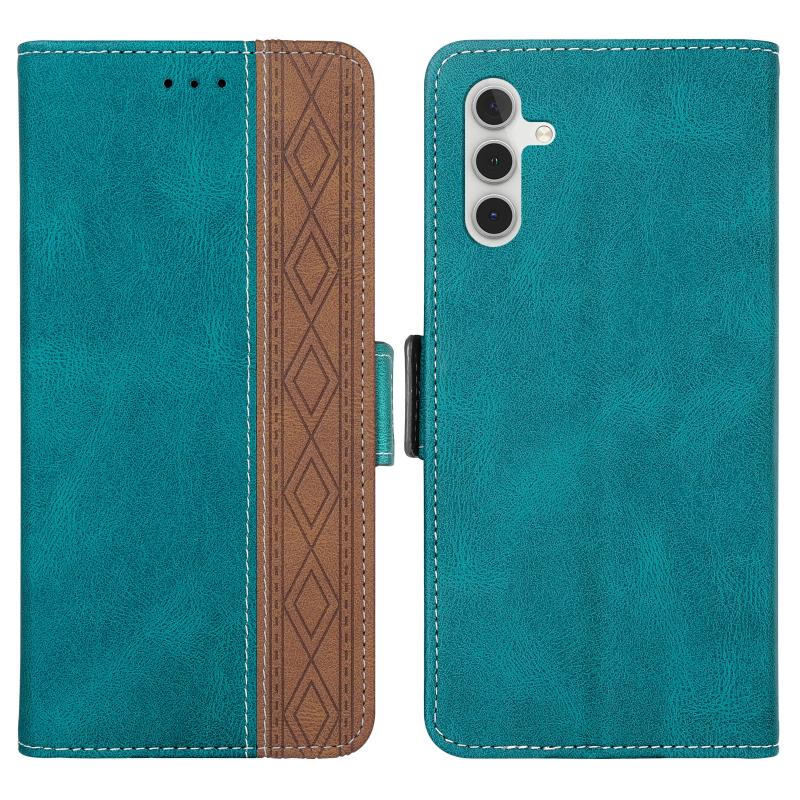 Θήκη τηλεφώνου Samsung Galaxy A14 5G από δέρμα με ραφές, πλευρικό μαγνητικό κλείσιμο και προστασία RFID (Σκούρο Πράσινο)