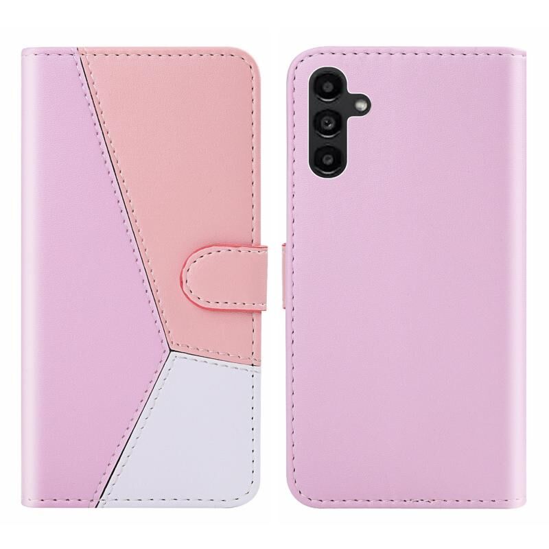 Για Samsung Galaxy A14 5G τρίχρωμη ραφή Flip δερμάτινη θήκη τηλεφώνου (ρόζ)