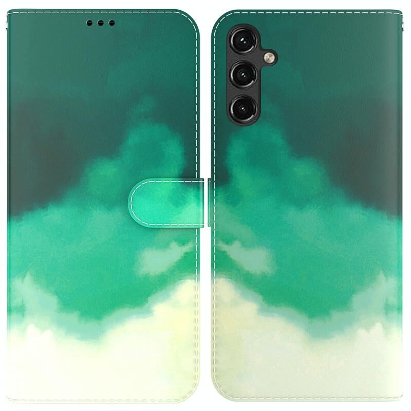 Για το Samsung Galaxy A14 5G νερομπογιά μοτίβο Flip δερμάτινη θήκη τηλεφώνου (κυανό πράσινο)