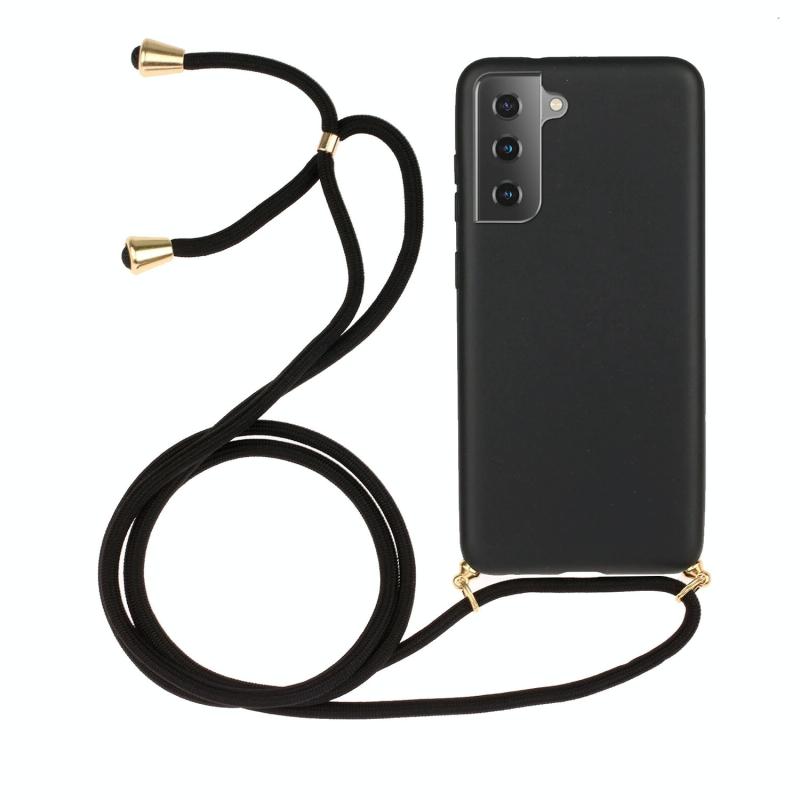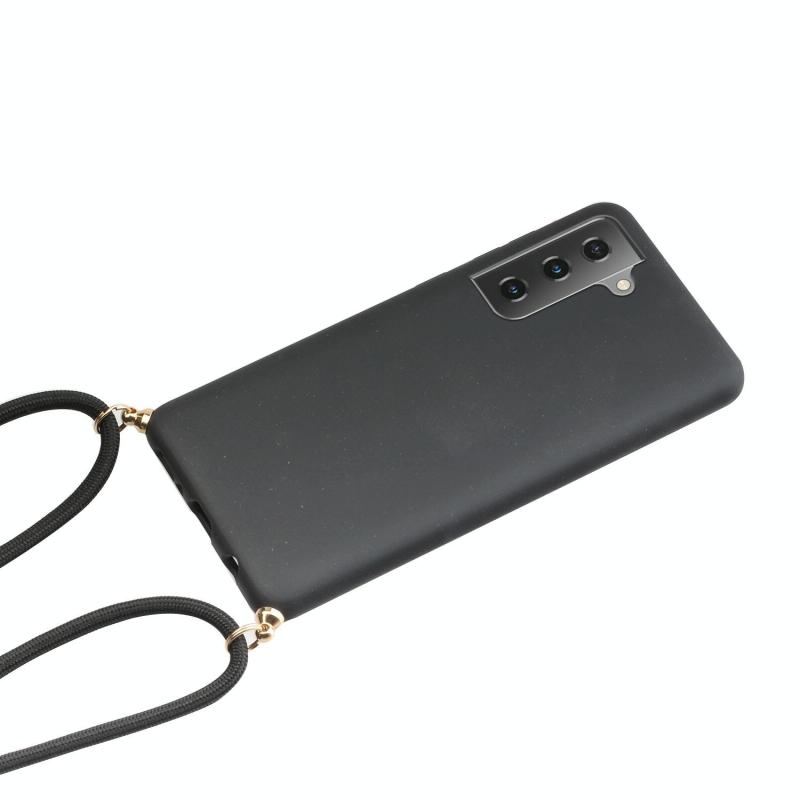Θήκη τηλεφώνου για Samsung Galaxy A14 5G από άχυρο σίτου + TPU με κορδόνι (Μαύρο)