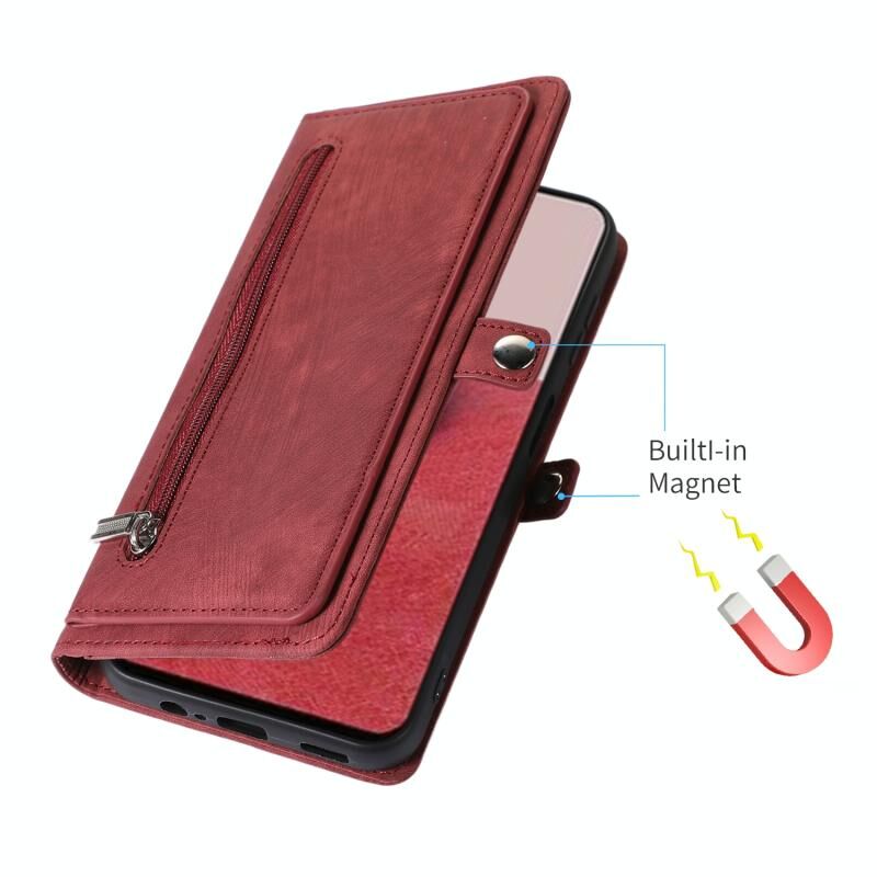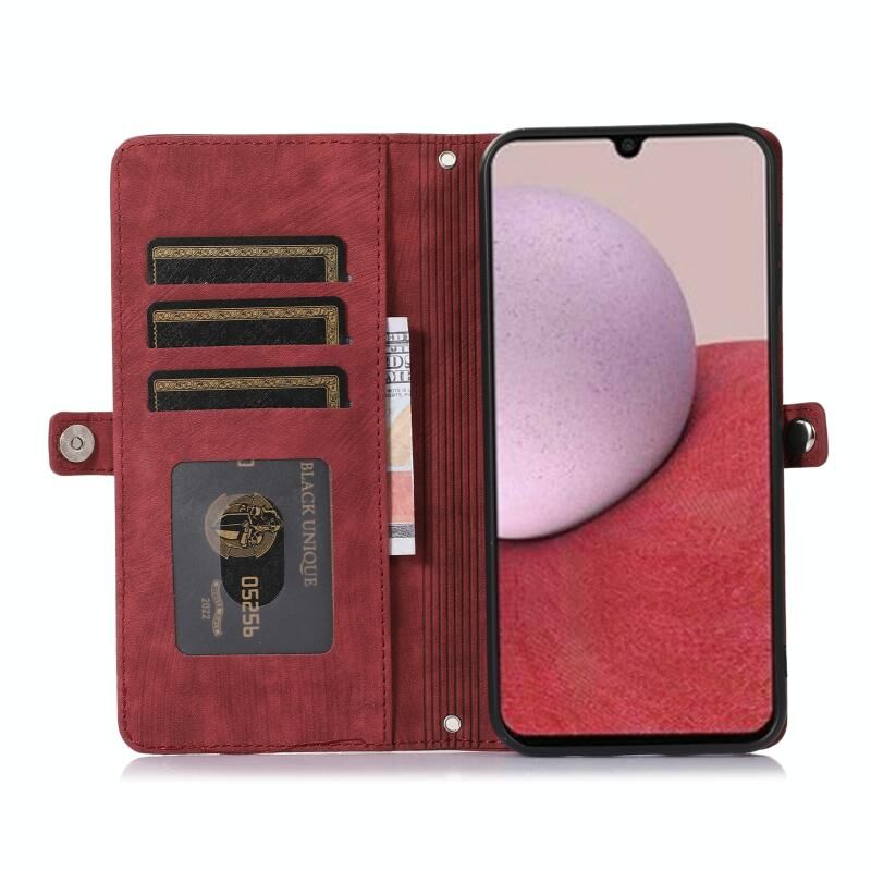 Για Samsung Galaxy A14 5G φερμουάρ κάρτα Slot πόρπη πορτοφόλι δερμάτινη θήκη τηλεφώνου (κόκκινο)