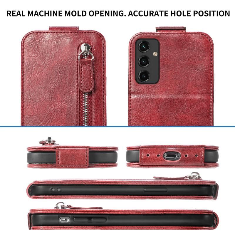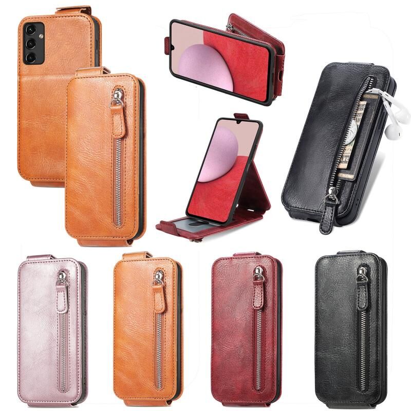 Θήκη τηλεφώνου Samsung Galaxy A14 5G, δερμάτινη, κάθετη, με φερμουάρ και πτυσσόμενο σχέδιο (Μαύρο)