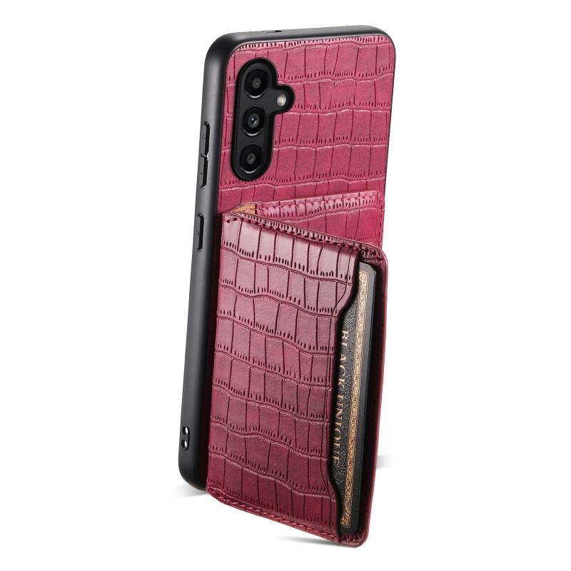 Θήκη κινητού τηλεφώνου Samsung Galaxy A14 με υφή κροκόδειλου και σχέδιο θήκης καρτών, πλήρης κάλυψη (Καφέ)