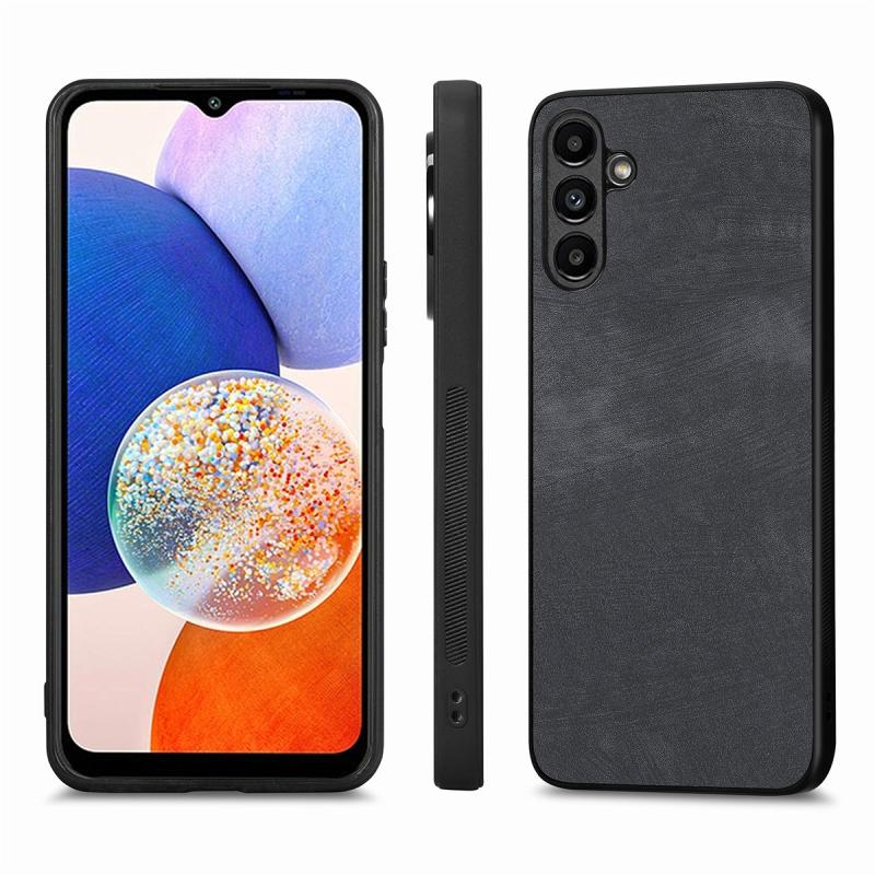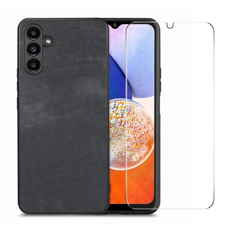 For Samsung Galaxy A14 ENKAY Retro Leather Skin PC Phone Case with High Aluminum-silicon Glass Film(Black) (ENKAY)