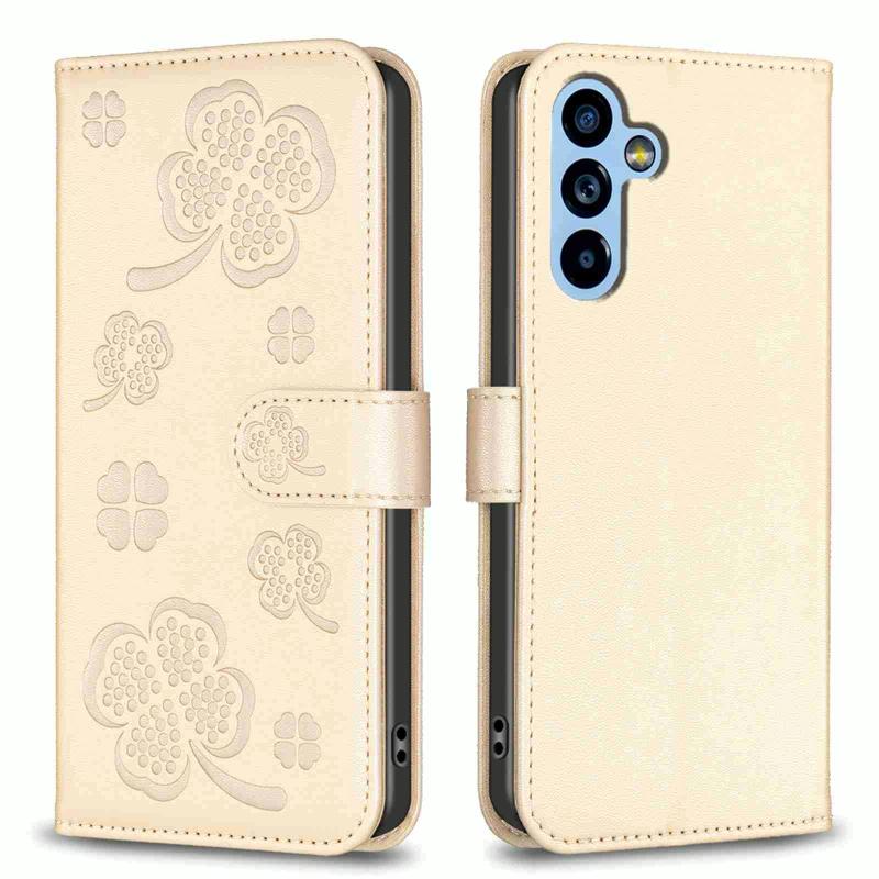 For Samsung Galaxy A14 Four-leaf Embossed Leather Phone Case(Gold)