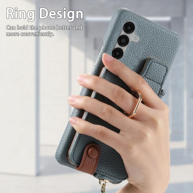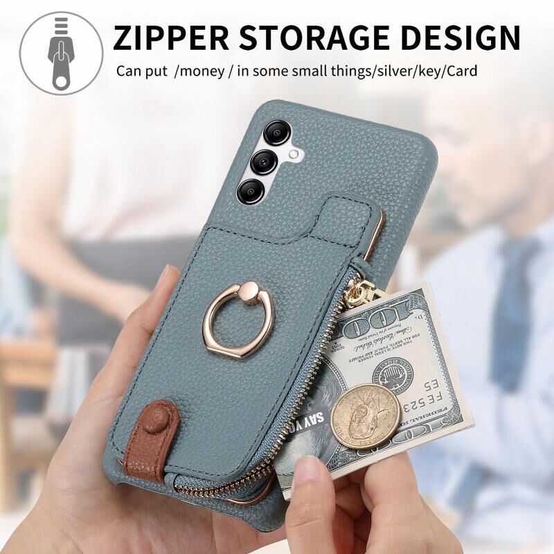 Για Samsung Galaxy A14 Litchi δέρμα λάδι Edge δαχτυλίδι φερμουάρ πορτοφόλι πίσω υπόθεση τηλεφώνου (Μπλε)
