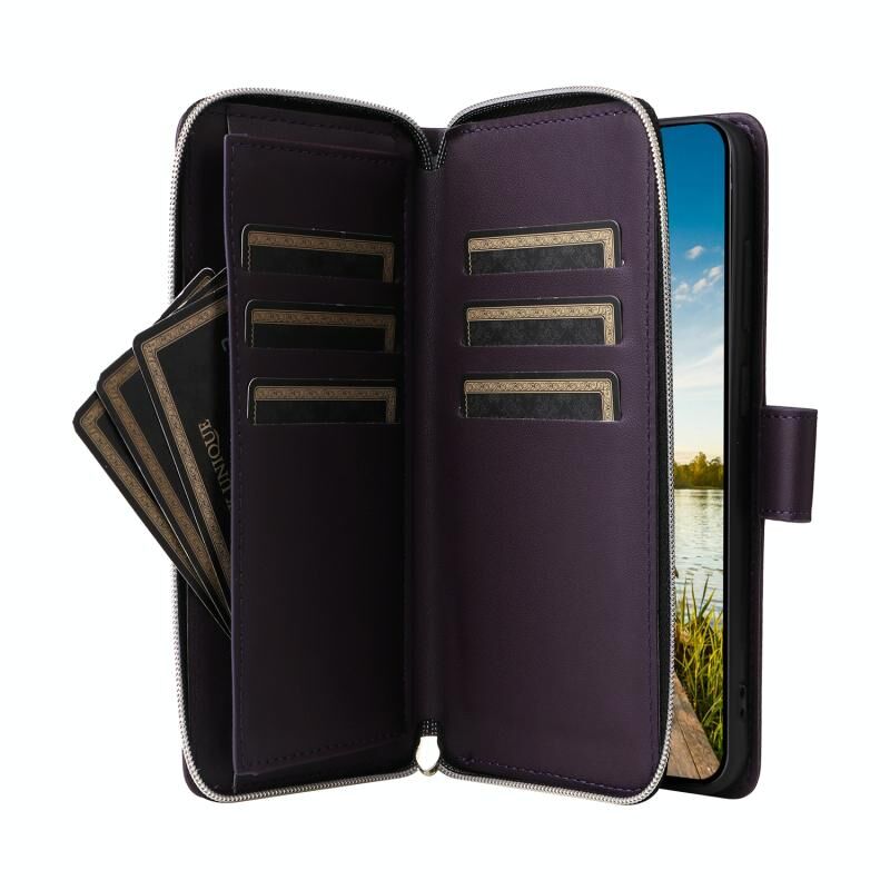 5. Πρακτική λειτουργία θήκης καρτών: Η υποδοχή κάρτας και η τσέπη πορτοφολιού με φερμουάρ και η θήκη μετρητών μπορούν να αποθηκεύσουν τις πιστωτικές σας κάρτες, τα μετρητά ή τα μικρά χαρτονομίσματα που χρειάζεστε καθημερινά.