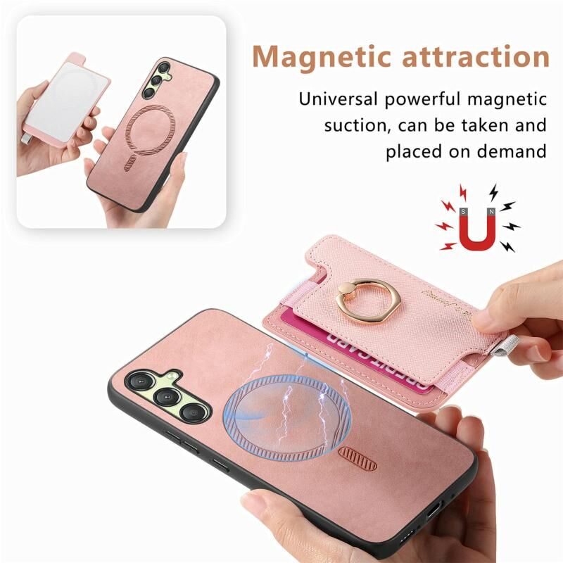Θήκη κινητού Samsung Galaxy A14 Retro Cross Leather Ring Horizontal Insert Card Bag MagSafe (Ροζ)