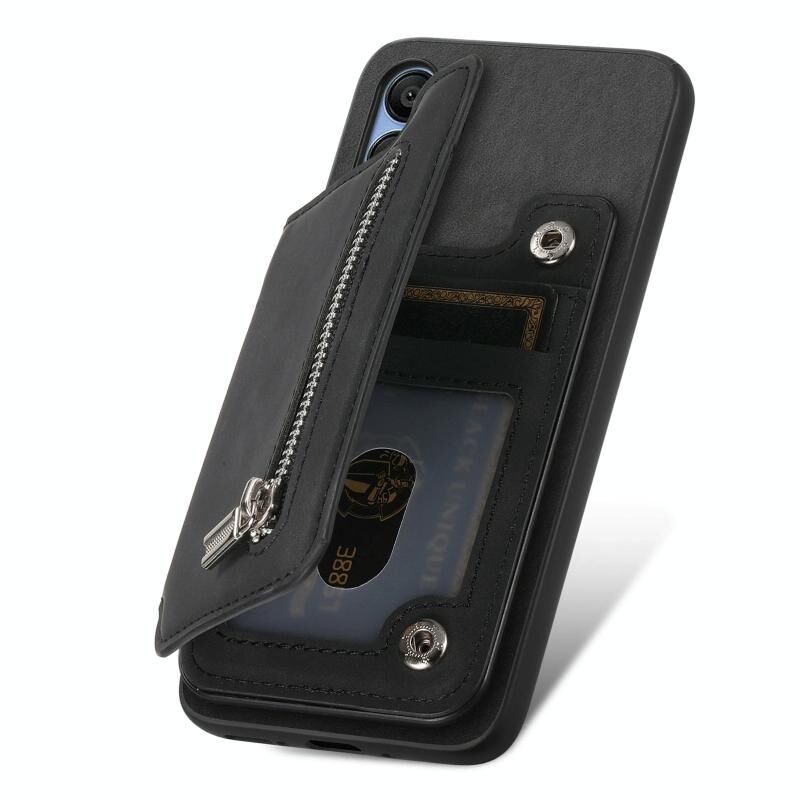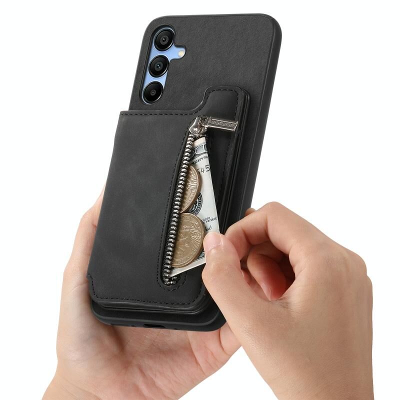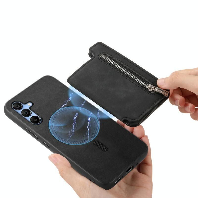 Θήκη κινητού Samsung Galaxy A14 Retro MagSafe με φερμουάρ και θήκη για κάρτες (Μαύρο)