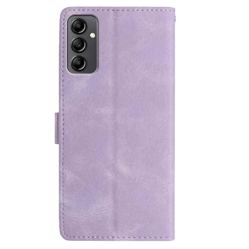Θήκη τηλεφώνου δερμάτινη με ανάγλυφο σχέδιο ροζ άνθους για Samsung Galaxy A14 (ανοιχτό μωβ)